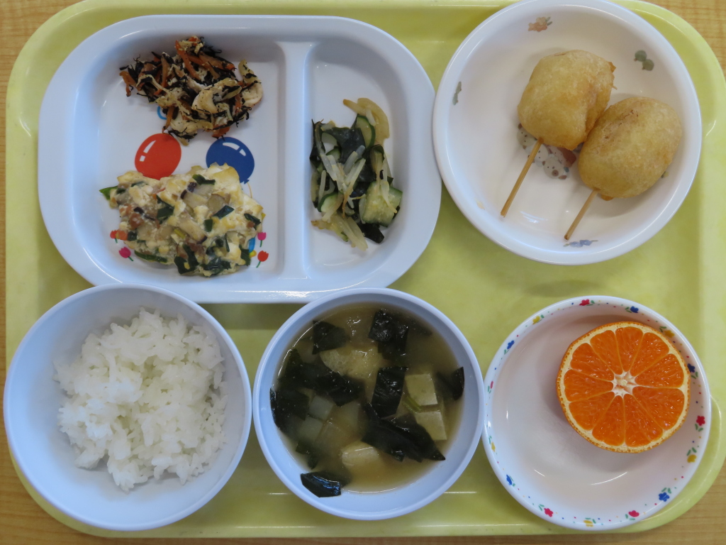 五目揚げは大人気のメニューです☆おかわりが食べたくて苦手な物を食べた子も(・∀・)苦手な物を出すときは、好きな物を出して挑戦させてみてもいいかもしれませんね😊