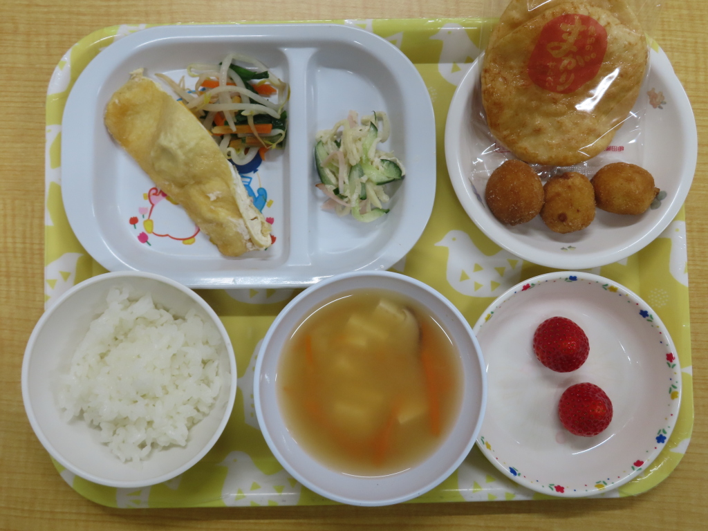 どのメニューも食べやすかったようで、残す子がいなかったです(*'▽')さくら組の子どもたちは、毎日自分達でごはんとみそ汁を盛り付けていますが、おかわりをする子が多いようで空っぽになって戻ってくることがほとんどです💓これからも子どもたちが食べやすいメニューを提供していきたいです😊