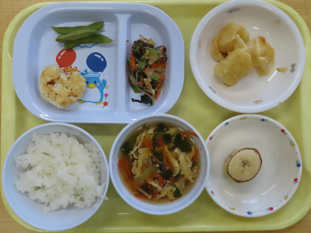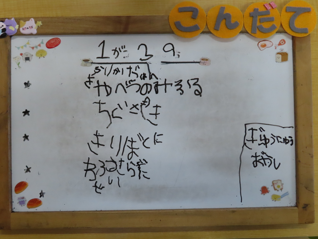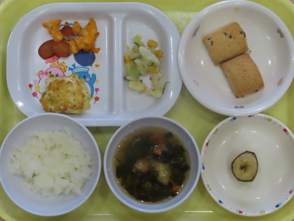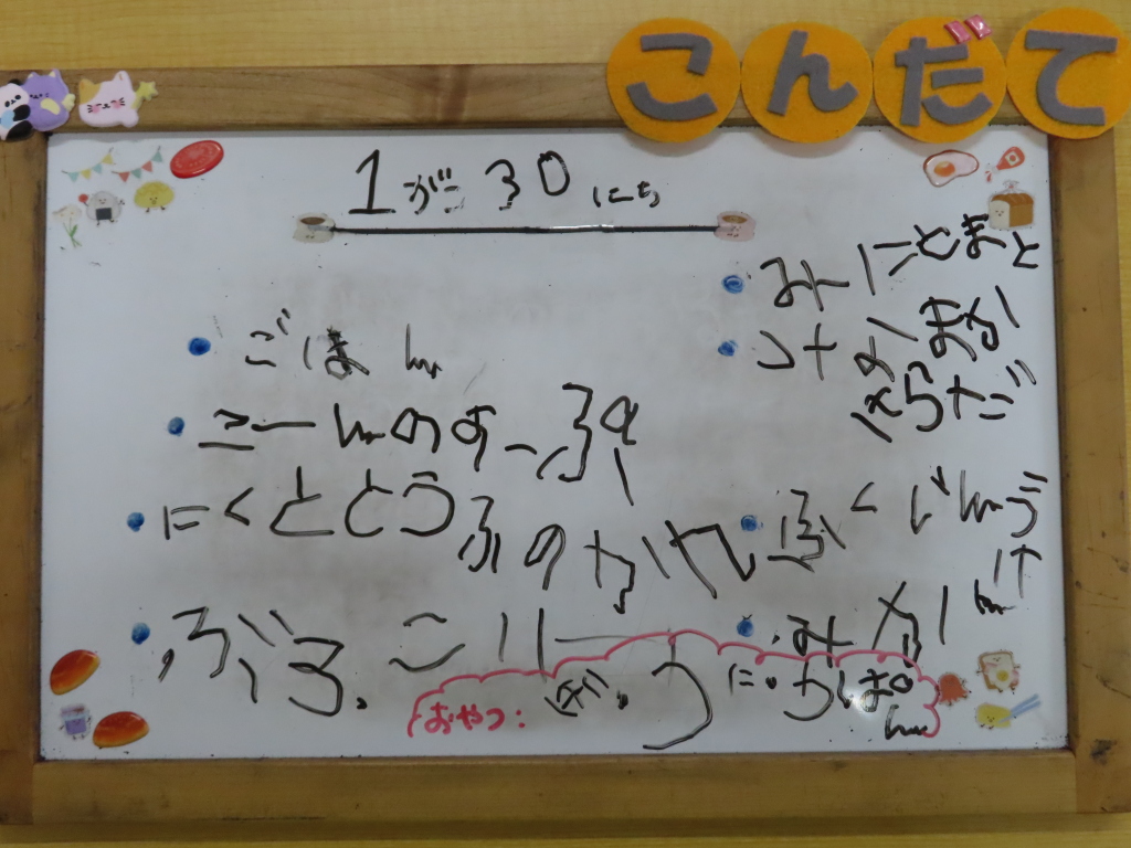 週末に近づいてくると疲れが出てきそうですが、子どもたちは今日も元気に過ごしていました☆完食する子続出です!午後のおやつに、うまい棒を出してみました😊美味しくて最後までぺろぺろなめた子もいたようです( ´艸`)
