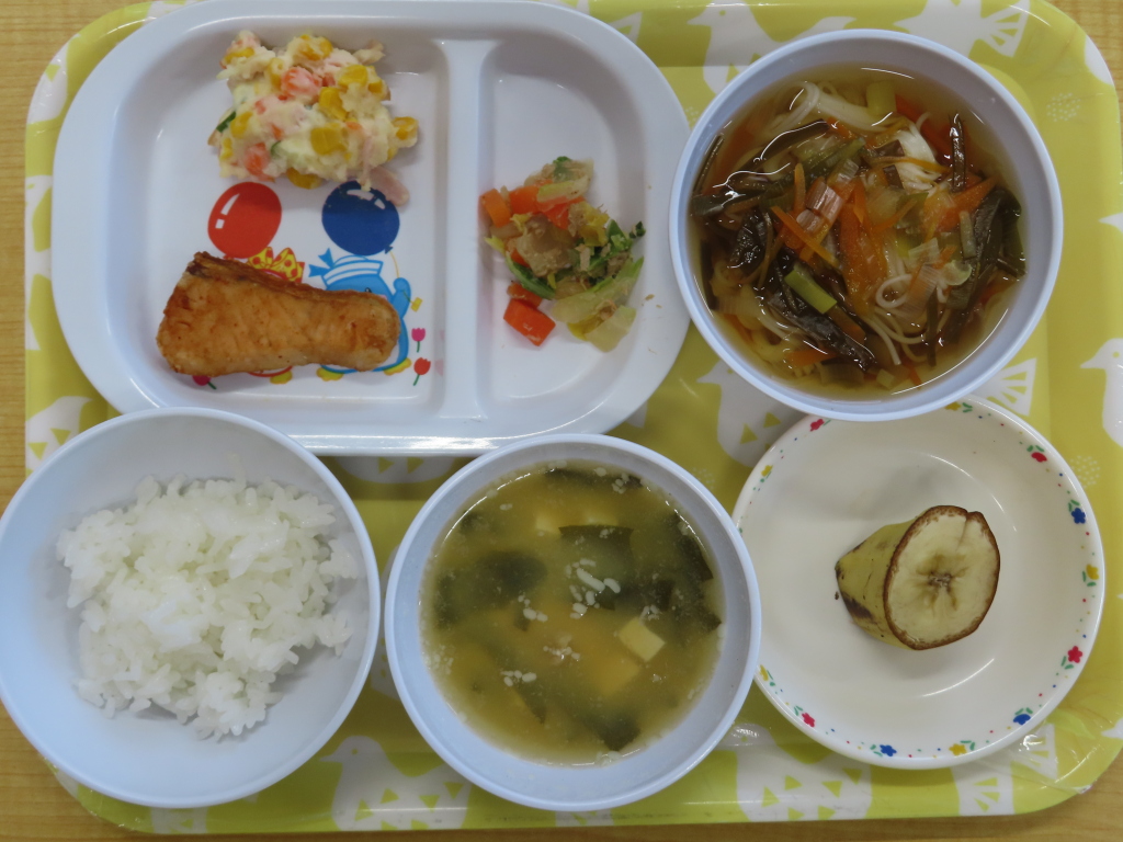 毎回人気のさばケチャ💖おかわりを出すとすぐになくなります!午後のおやつは蒸しパンではなく、フルーツヨーグルトに変更しています_(._.)_