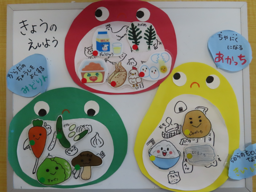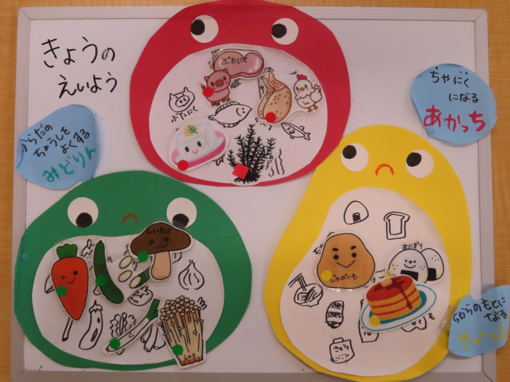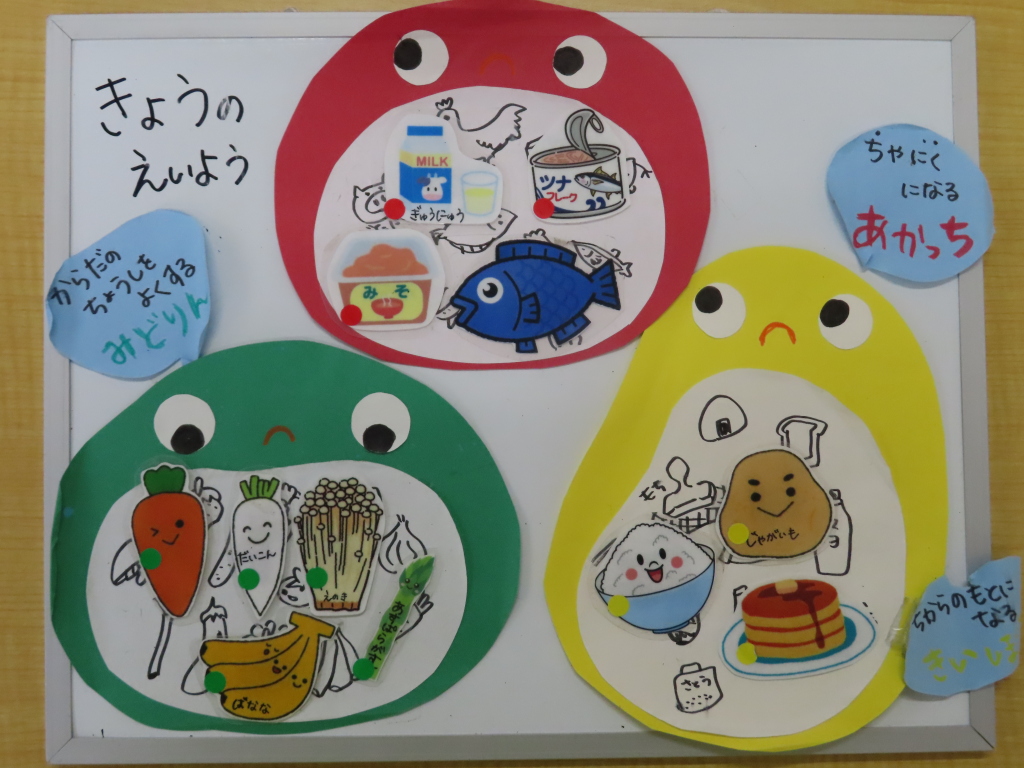 魚が焼けるにおいがしたようで、「今日のおさかなな~に?」と子どもたちから聞かれました☆彡あじだよ!と答えると、「前に先生がお部屋で焼いたことあるよね?」と話してくれました😊子どもたちの記憶力さすがです♡