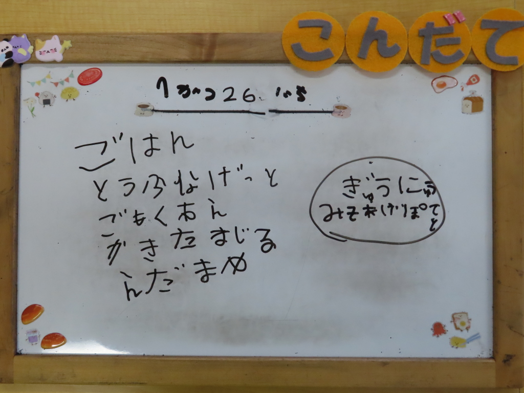 どのクラスにもおかわりを出しましたが完食🎵寒さが厳しいので、たくさん食べて体をあたためて元気に過ごしたいですね💛おやつのみそあげポテトも人気のメニューです☺