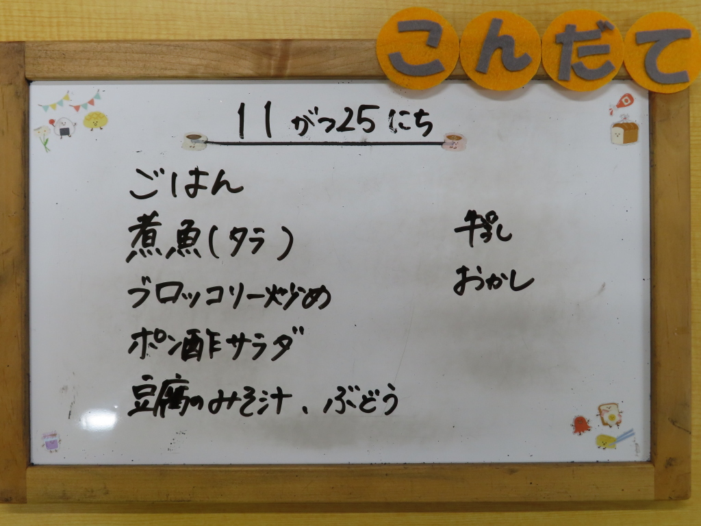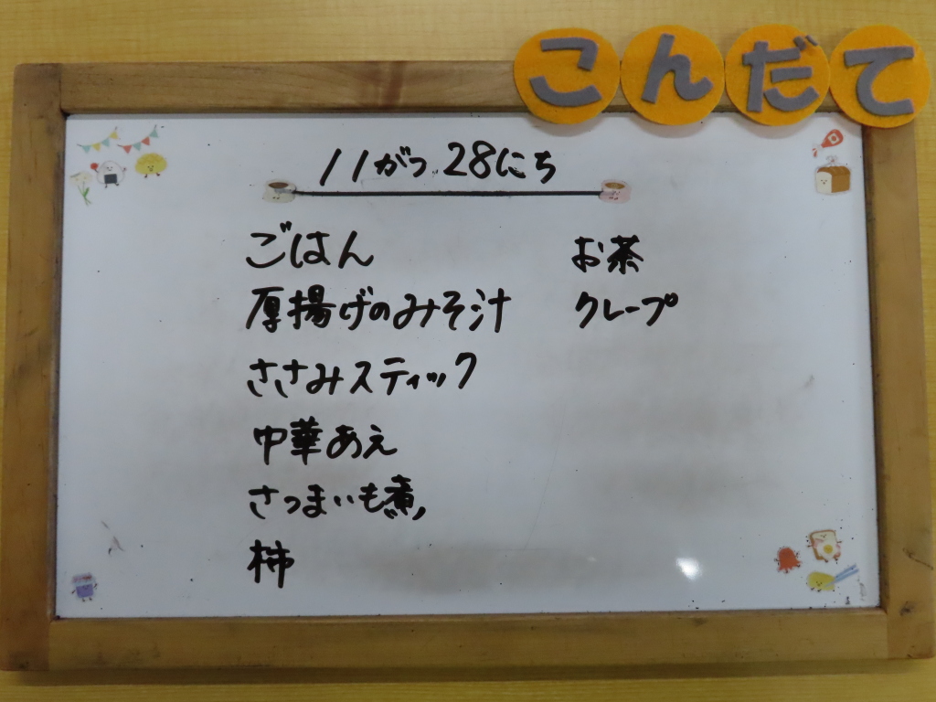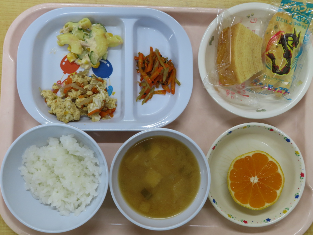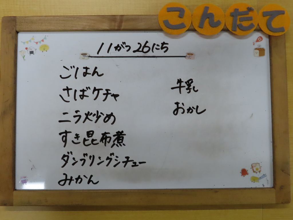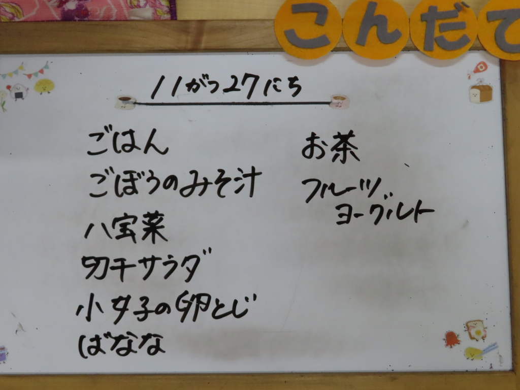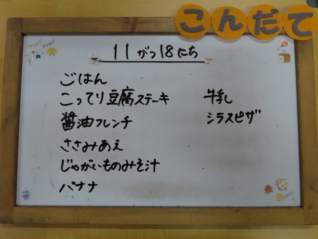 今日は七五三でした🎵久しぶりに平日に親子丼♪紅白なますを苦手と感じていた子もいたようですが、頑張って食べてくれたようです(*´▽`*)おやつのフレンチトーストも、おかわりもペロリでした😊市内ではインフルエンザが流行っているようです!たくさん食べて元気に過ごしたいですね💕