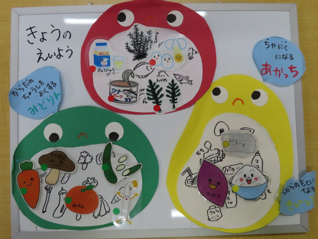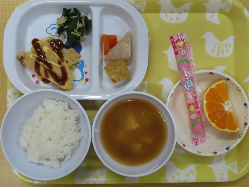 いつもならおやつに出す「お好み焼き」をお昼に出してみました。「あれ?今日はお好み焼きだね~」「おやつじゃないんだ」という声が多く聞かれました😊献立を見てきている子どもたちは、「今日はお給食にお好み焼きが出るんだよ」と教えていました(*'▽')毎日献立をチェックしてきている子どももいるようで嬉しく思います🤩