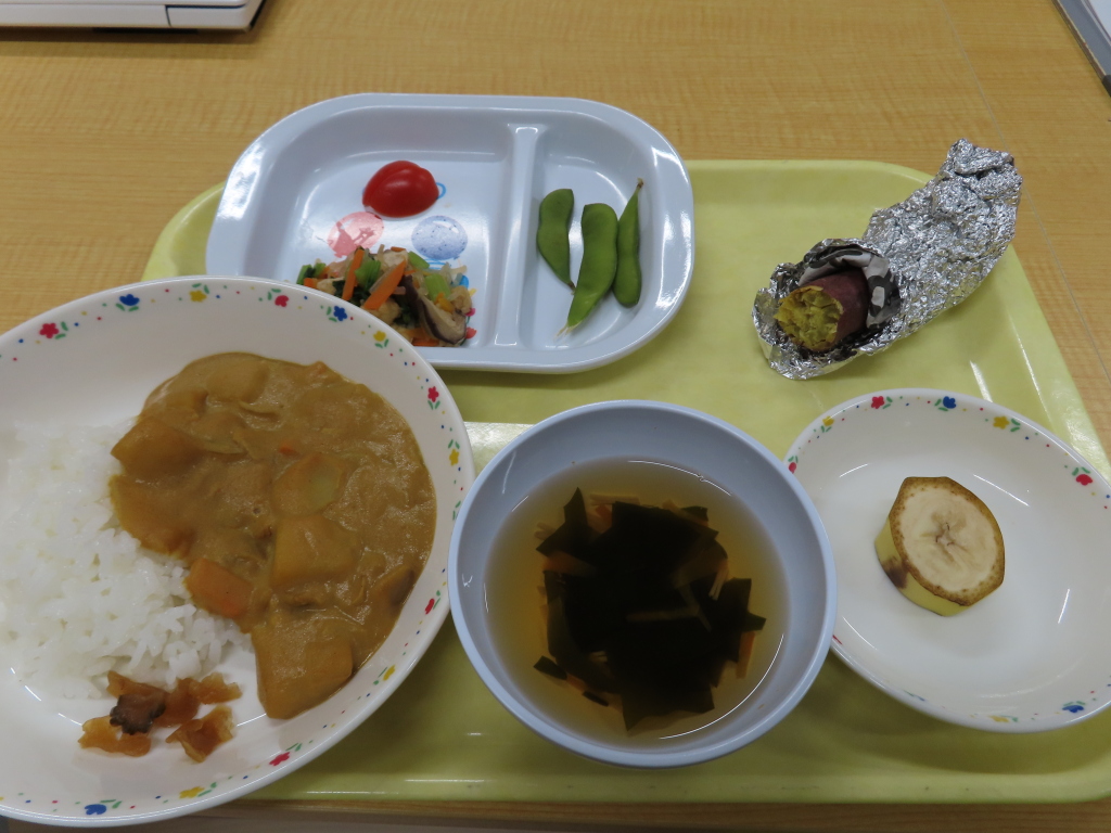 今日はみんな大好きカレー♪外遊びから戻り、カレーの匂いに気づいた子は「カレーだ!!」と大喜びしていました。食欲をそそるにおいですね💛午後は、石焼きいも!!園庭で園長先生がさつまいもを焼いてくれました!やっぱり、石で焼いたおいもは格別!!😄💪🏻おいしく頂きました💓
