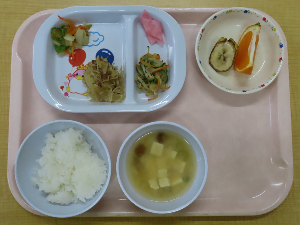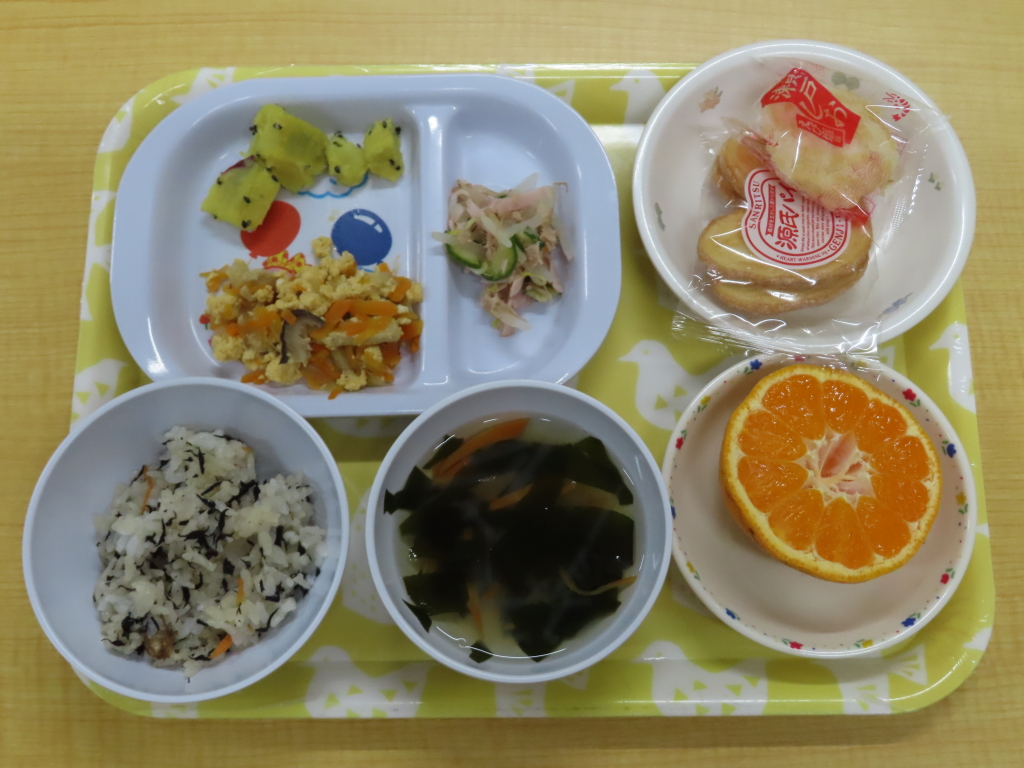 今日はもやしの卵とじ!シャキシャキの食感とふんわりたまごがとっても美味しくて、ごはんにもよく合いました!!果物はこれから旬を迎えるみかん🍊給食前に調理室の窓から、「今日のフルーツなに~??」ときいてくるさくら組さん!ジューシーなみかんを楽しみました♪